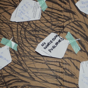 Members of the Aryaloka sangha are taking on personal precepts to live simply during Buddhist Action Month. After the opening dedication ritual for BAM, each person wrote their precept on a paper leaf and placed it on the tree. Personal precepts ranged from giving away a bag of clothes each week to eliminating meat consumption to working on reducing gun violence. In keeping with the intent of BAM, the tree was made out of recycled cardboard pizza boxes...
